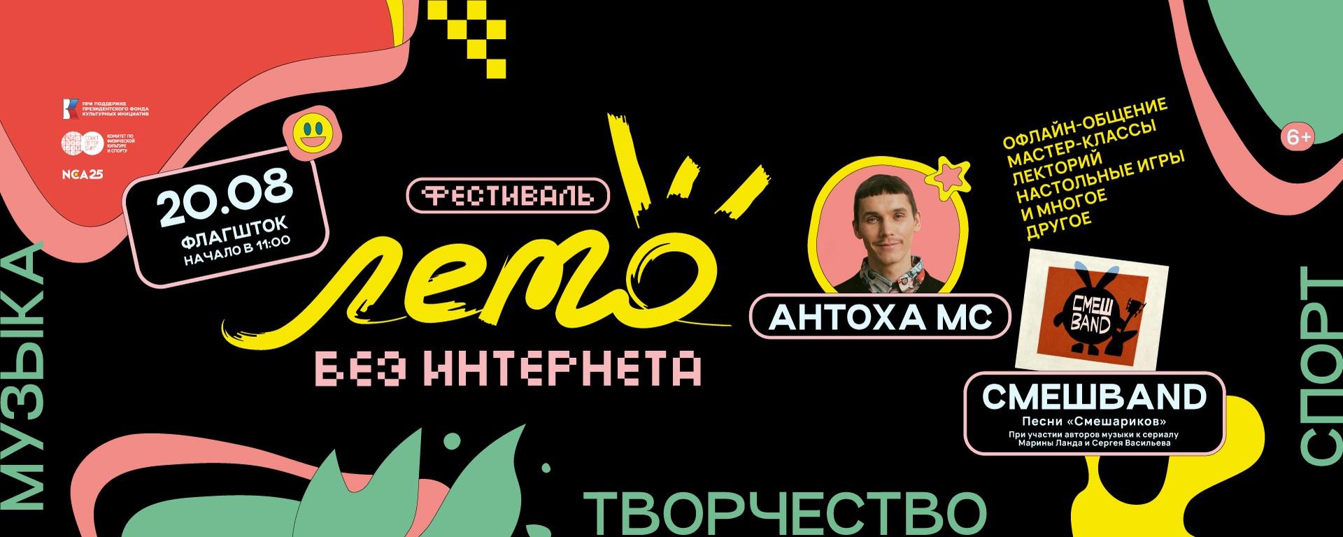 20 августа 2023 Пространство «ФЛАГШТОК» и территория рядом с метро «Зенит» Фестиваль «ЛЕТО без интернета» ВХОД СВОБОДНЫЙ. Начало фестиваля в 11:00